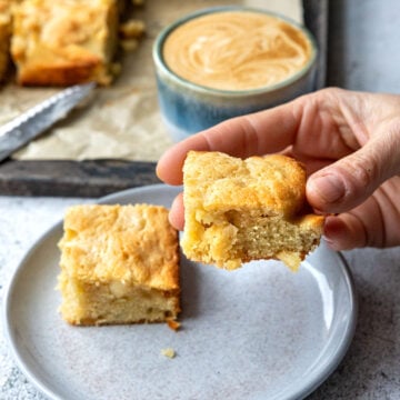 - Ihr könnt die Blondies auch einfrieren – dafür am besten zuvor in Stücke schneiden und anschließend bei Raumtemperatur wieder auftauen lassen