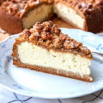 Ein Boden aus Mürbeteig, eine zuckrige Quarkfüllung und eine Haube aus knusprigen, goldbraunen Streuseln – das ergibt einen leckeren Käsekuchen mit Streuseln! Ich backe den Kuchenklassiker in der Springform und reibe etwas Zitronenschale in die Quarkmasse. Das Rezept ist wirklich ganz einfach selbstgemacht, schmeckt unwiderstehlich und eignet sich perfekt als Nachtisch oder zum Kaffee.