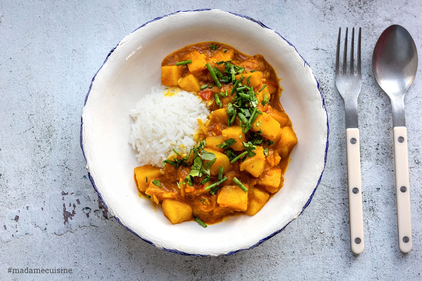 - Kartoffeln: Festkochende oder vorwiegend festkochende Kartoffeln eignen sich besonders gut für dieses Curry. Sie behalten beim Kochen ihre Form und sind damit sozusagen der feste Bestandteil des Curries. Da Kartoffeln vom Geschmack her eher neutral sind, nehmen sie das Aroma der Gewürze und auch die beim Kochen entstehende Sauce besonders gut auf.