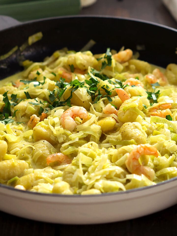 Gnocchi-Lauch-Pfanne mit Curry & Garnelen