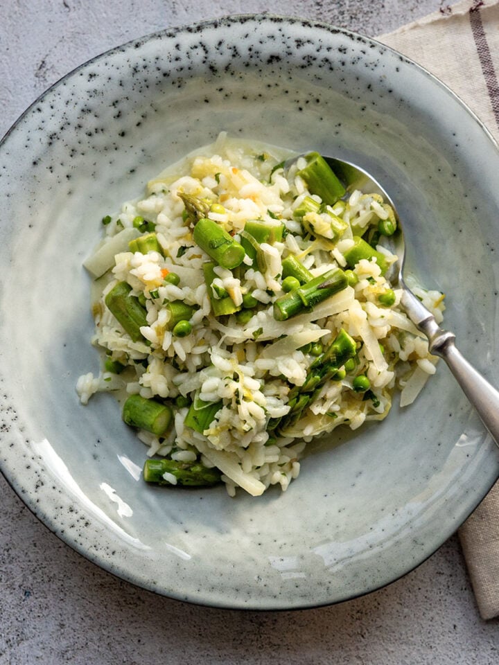 Veganes Risotto mit grünem Spargel